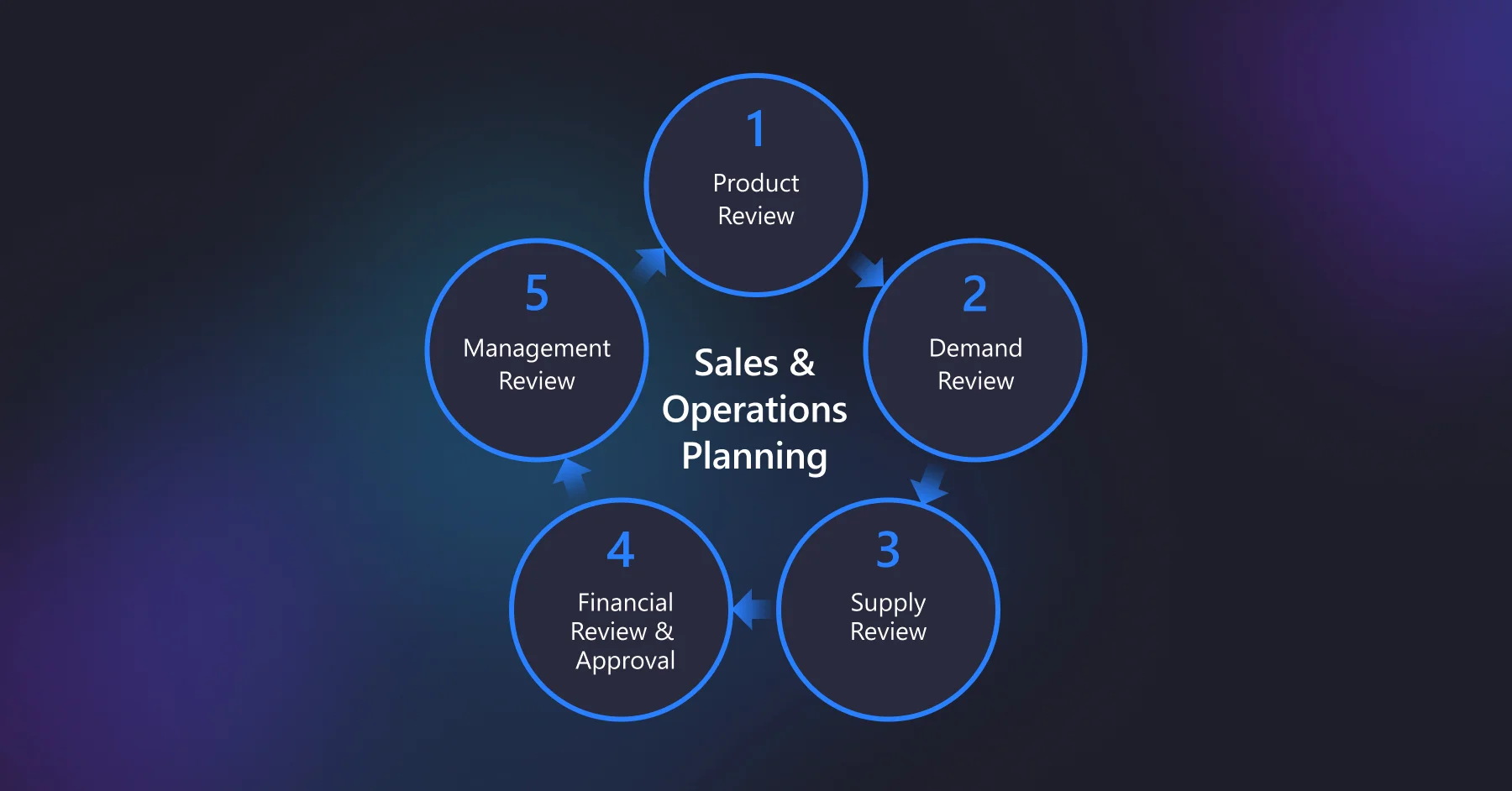 Sales & Operations Planning (S&OP) is a cyclical methodology that helps companies align demand, resources, financial planning, and product management. The S&OP process aims to balance what the business can supply (produce) with what the market needs. It includes several key stages, such as product review, demand review, supply review, financial review, and management review. Each stage is critical for ensuring continuous adaptation to market changes: