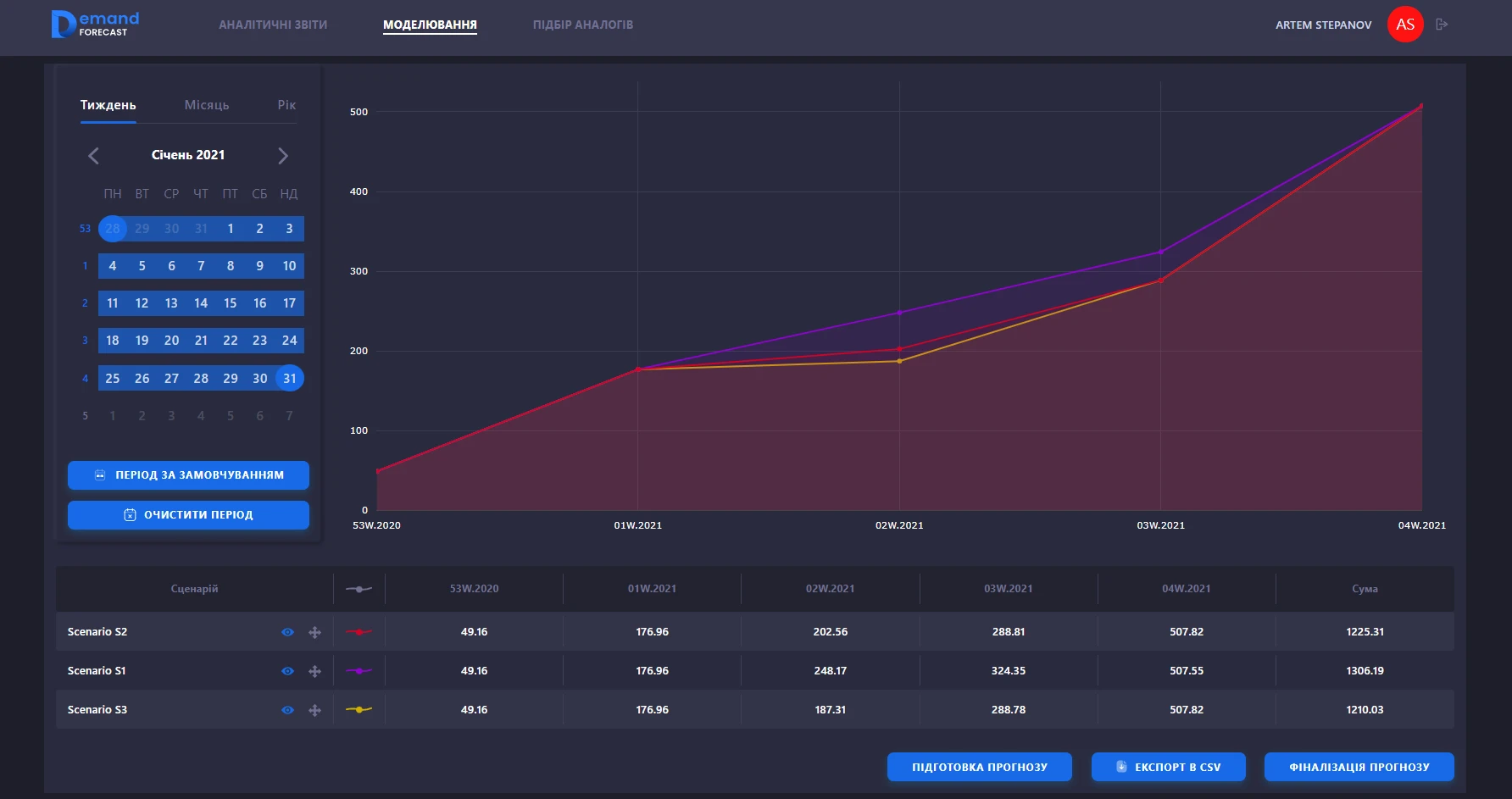 У рішенні SMART Demand Forecast реалізований блок моделювання, який дозволяє: запускати процес навчання моделі та підготовки прогнозу, адмініструвати промокампанії, а також зберігати та експортувати результати. В блоці є такі можливості: